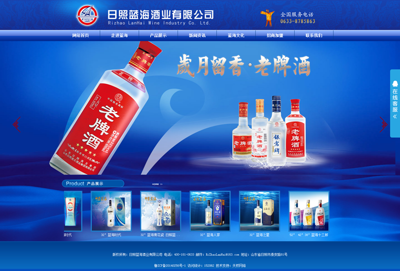 公司旗下?lián)碛杏∠笏{海V系列、印象藍海星系列、日照藍海、藍海時代、藍海十三郎等系列產(chǎn)品及紅日照醇、堯王老酒壇、老牌酒等幾大系列白酒品牌產(chǎn)品。